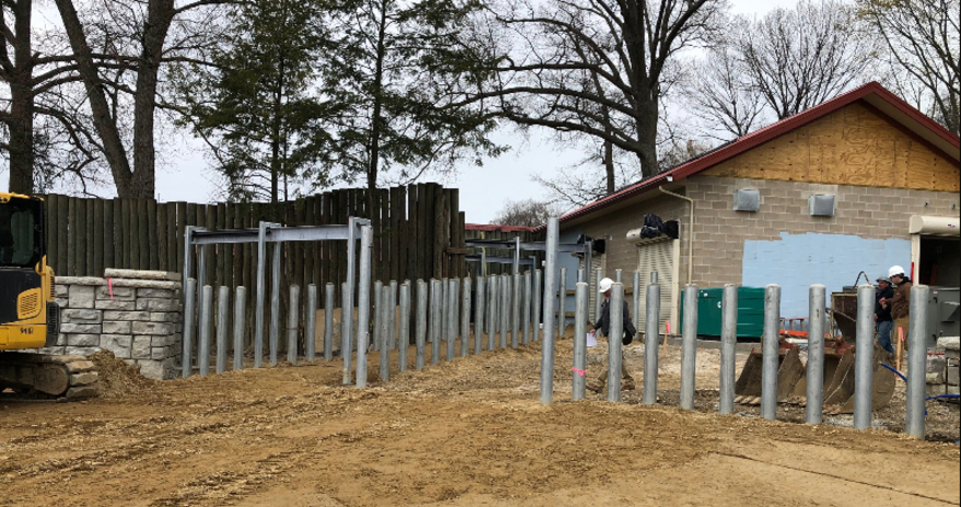 Where the former Monkey Island exhibit used to exist, there is now a leveled area of land representing the beginnings of the soon-to-be Daniel Maltz Rhino Reserve. Barrier walls are going up, the new bull barn is nearing completion and the rhinos' newest shade structure is starting to take shape.